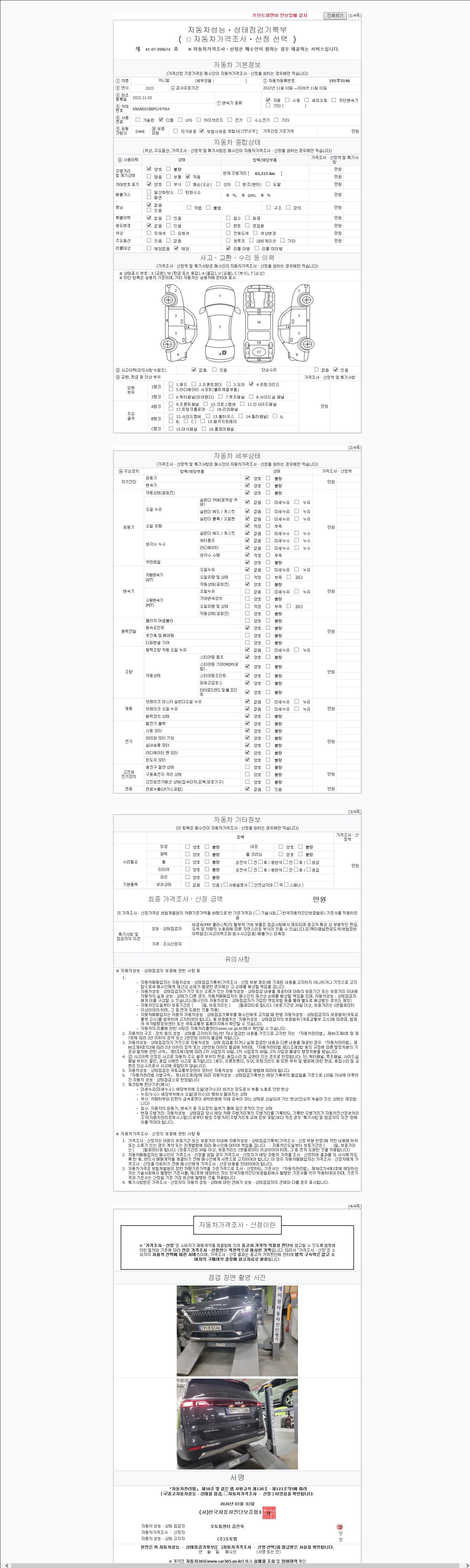 2. 차량 등록증이나 성능점검지 등을 상담자에게 요청및 확인하시고 사전에 미리 점검 하시기를 권유드립니다.