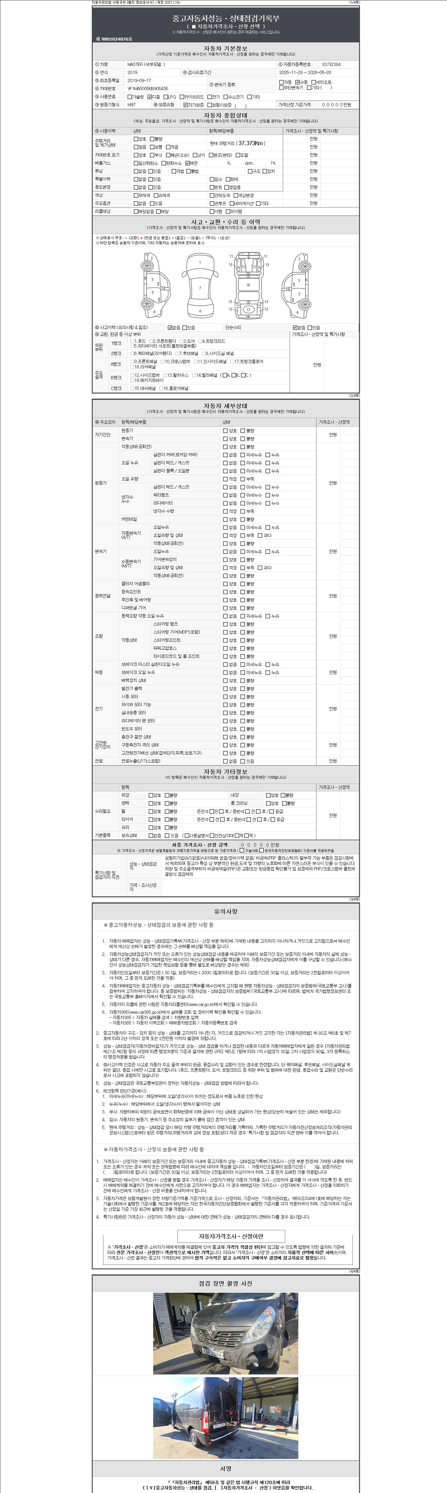 -중고자동차 매매업자를 통해 차량을 구입하실 경우 반드시 "중고자동차 성능, 상태점검 기록부"를 교뷰 받으셔야 하며, 매매업자는 반드시 의무 교부 하여야 압니다.