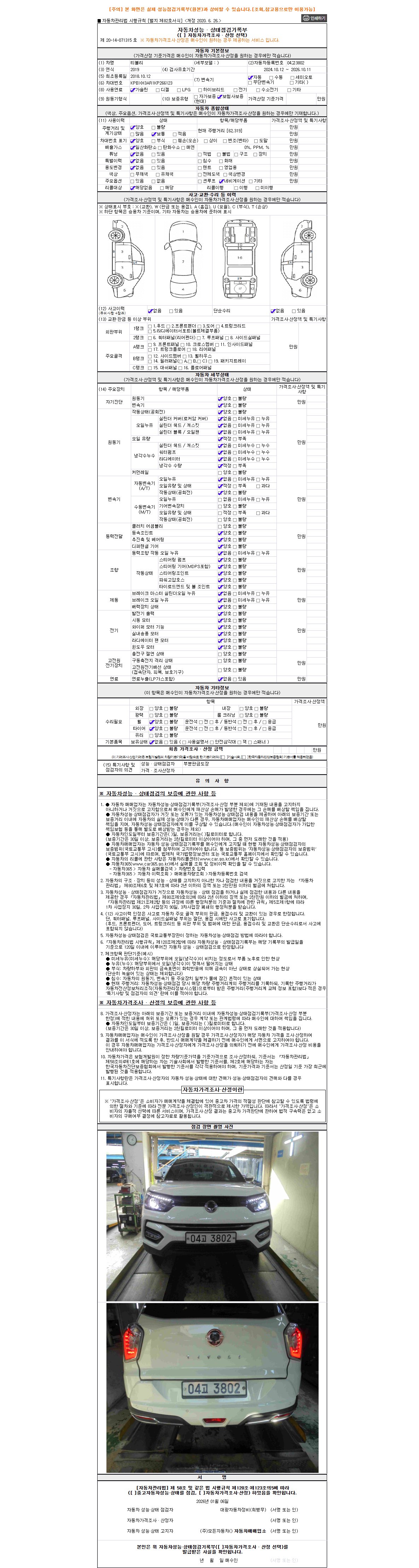 2. 차량 등록증이나 성능점검지 등을 상담자에게 요청및 확인하시고 사전에 미리 점검 하시기를 권유드립니다.