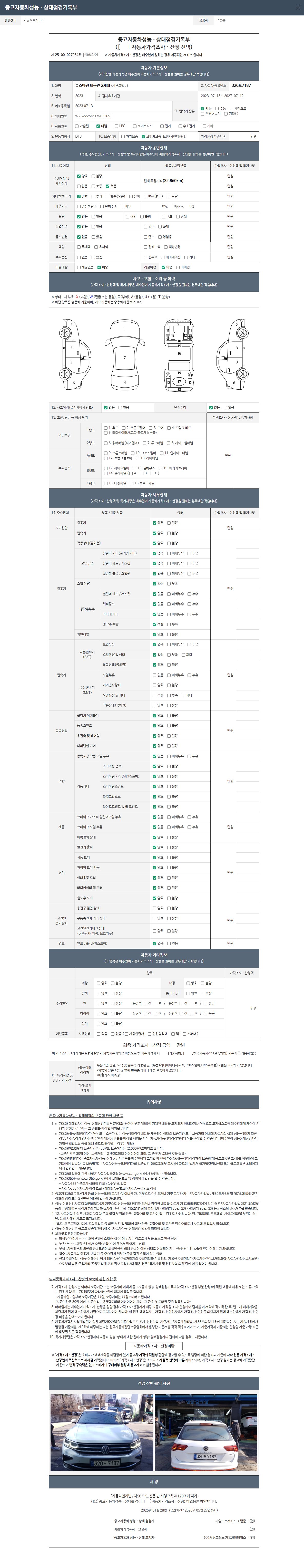 2. 차량 등록증이나 성능점검지 등을 상담자에게 요청및 확인하시고 사전에 미리 점검 하시기를 권유드립니다.
