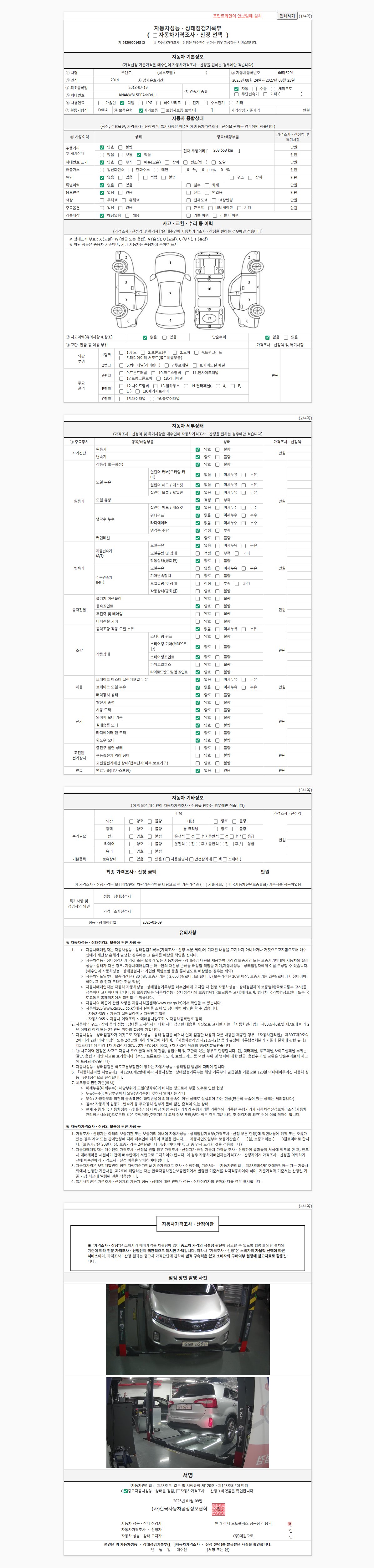 2. 차량 등록증이나 성능점검지 등을 상담자에게 요청및 확인하시고 사전에 미리 점검 하시기를 권유드립니다.