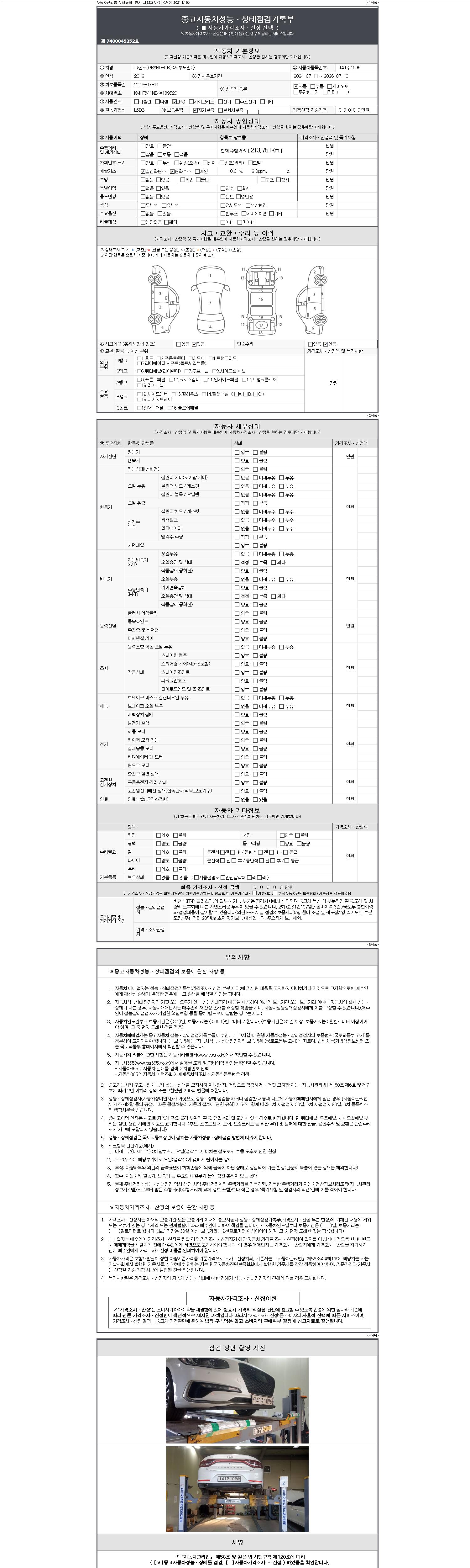 -중고자동차 매매업자를 통해 차량을 구입하실 경우 반드시 "중고자동차 성능, 상태점검 기록부"를 교뷰 받으셔야 하며, 매매업자는 반드시 의무 교부 하여야 압니다.