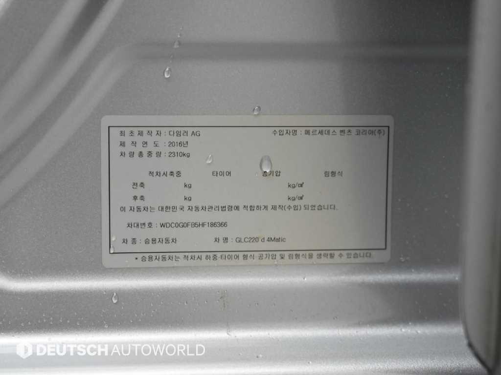 벤츠 GLC 클래스 GLC클래스 X253 (16~23년) GLC 220 d 4MATIC |