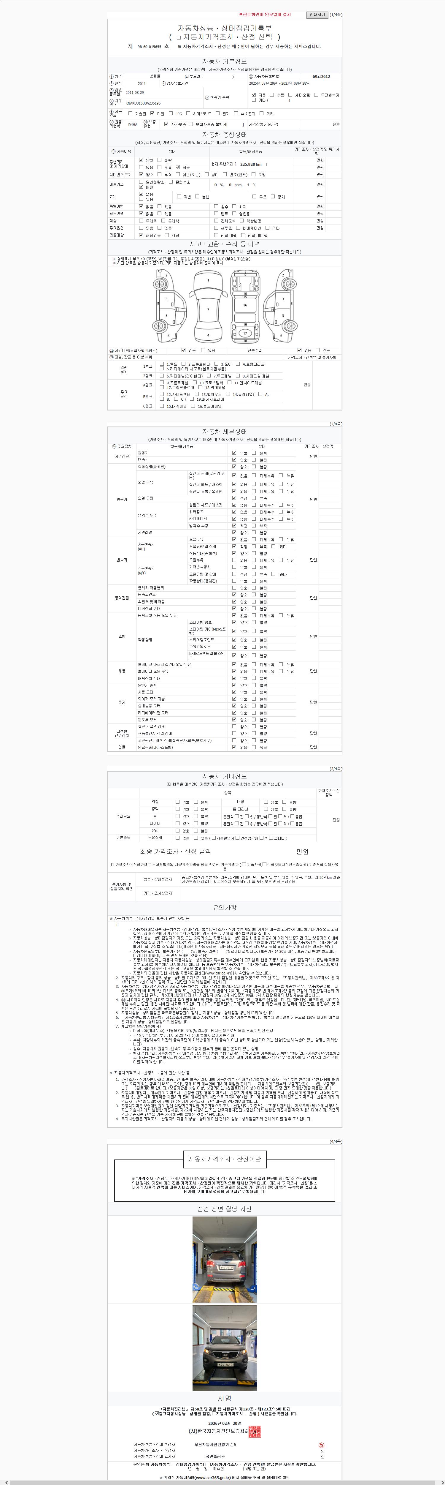 | 주행거리 | 225,925 km | 차량번호 | 69고2612 |