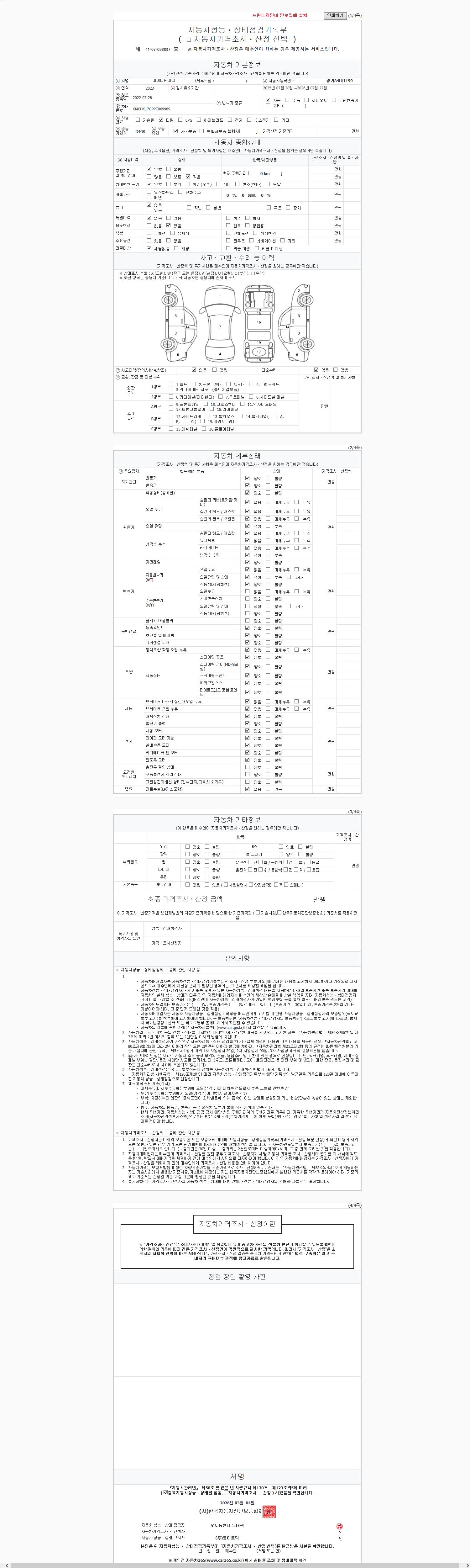 2. 차량 등록증이나 성능점검지 등을 상담자에게 요청및 확인하시고 사전에 미리 점검 하시기를 권유드립니다.
