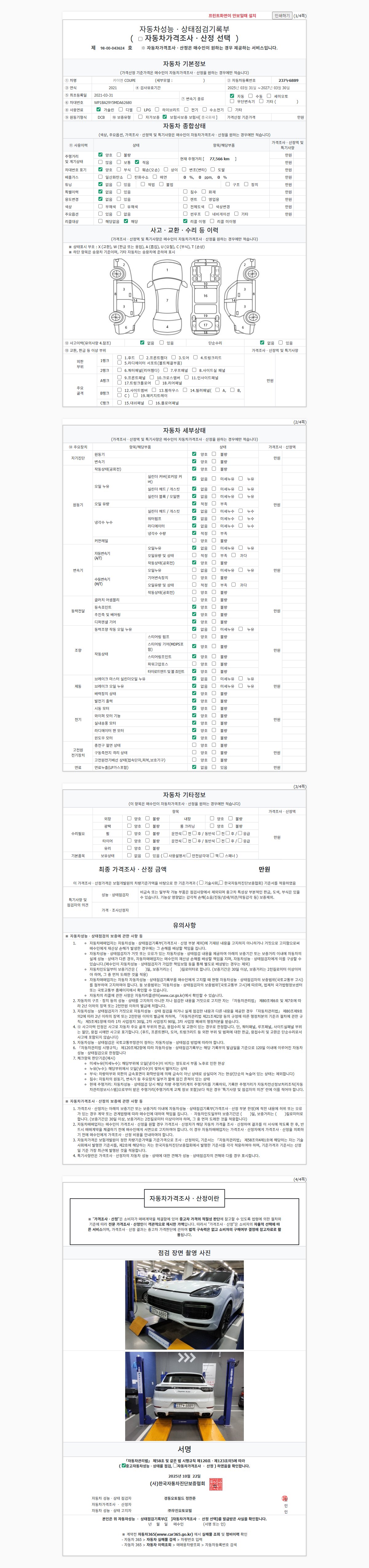 2. 차량 등록증이나 성능점검지 등을 상담자에게 요청및 확인하시고 사전에 미리 점검 하시기를 권유드립니다.