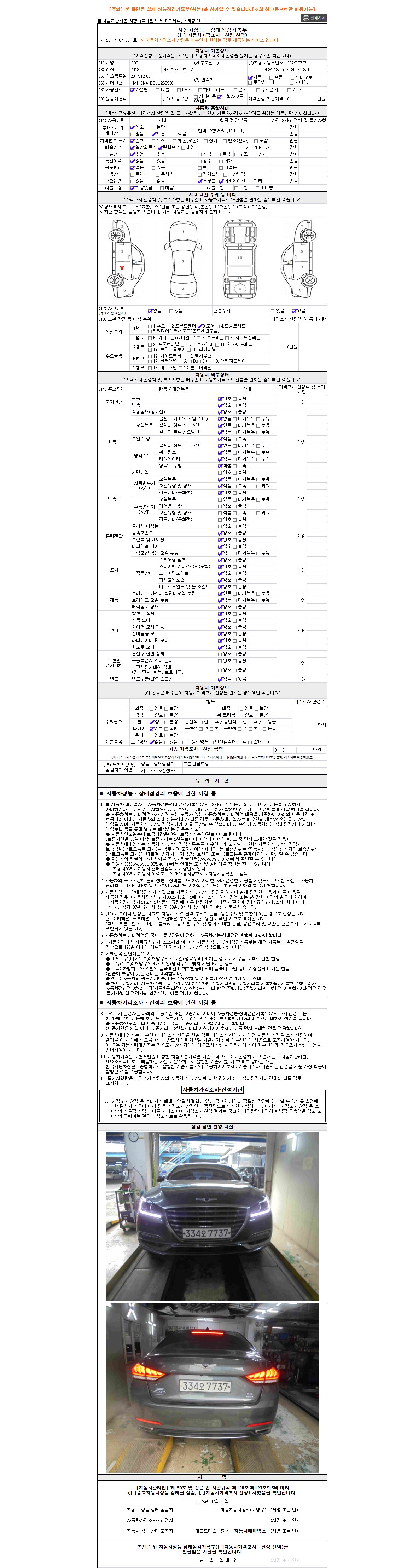 2. 차량 등록증이나 성능점검지 등을 상담자에게 요청및 확인하시고 사전에 미리 점검 하시기를 권유드립니다.