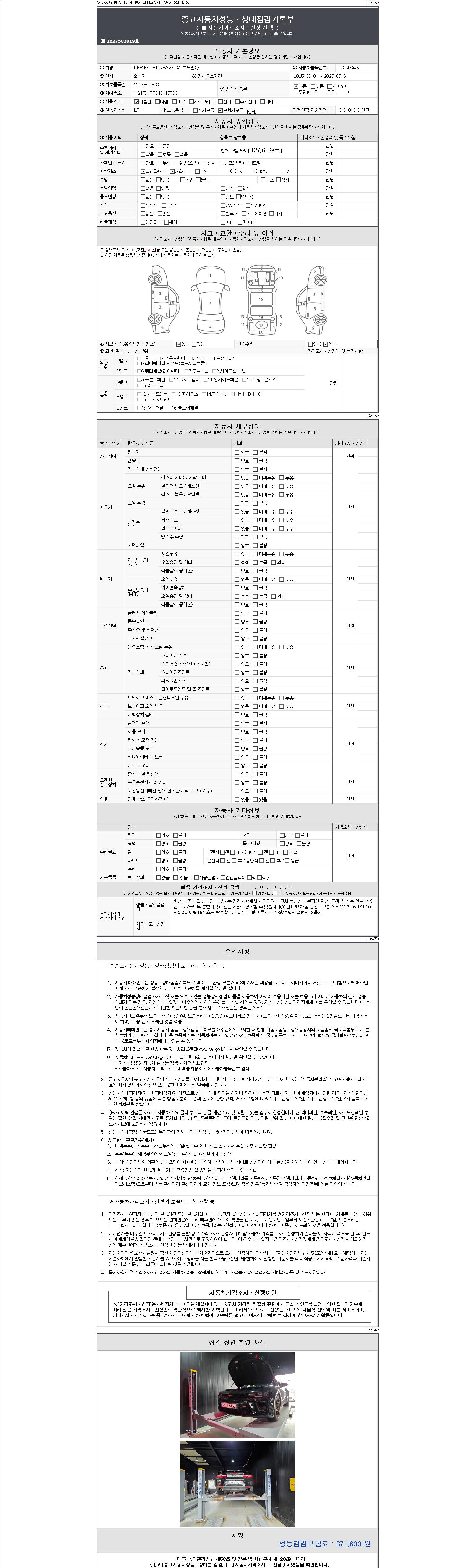 2. 차량 등록증이나 성능점검지 등을 상담자에게 요청및 확인하시고 사전에 미리 점검 하시기를 권유드립니다.