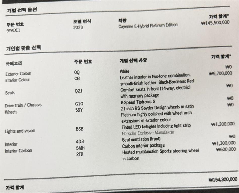 포르쉐 카이엔 카이엔(PO536) (19년~) 3.0 E-하이브리드 플래티넘 에디션 |