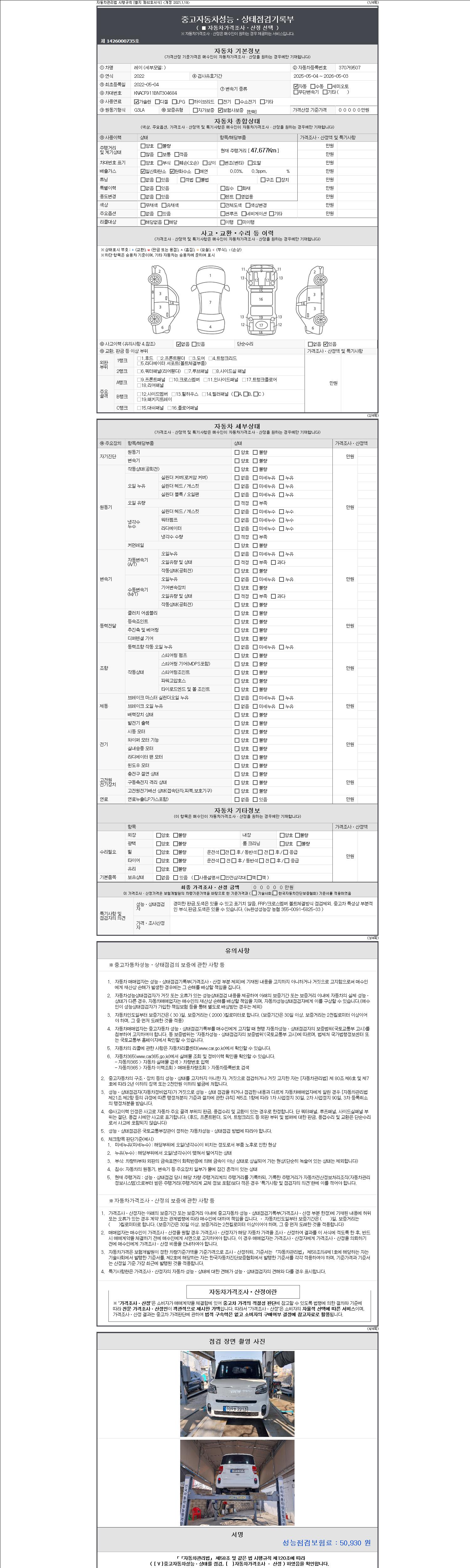2. 차량 등록증이나 성능점검지 등을 상담자에게 요청및 확인하시고 사전에 미리 점검 하시기를 권유드립니다.