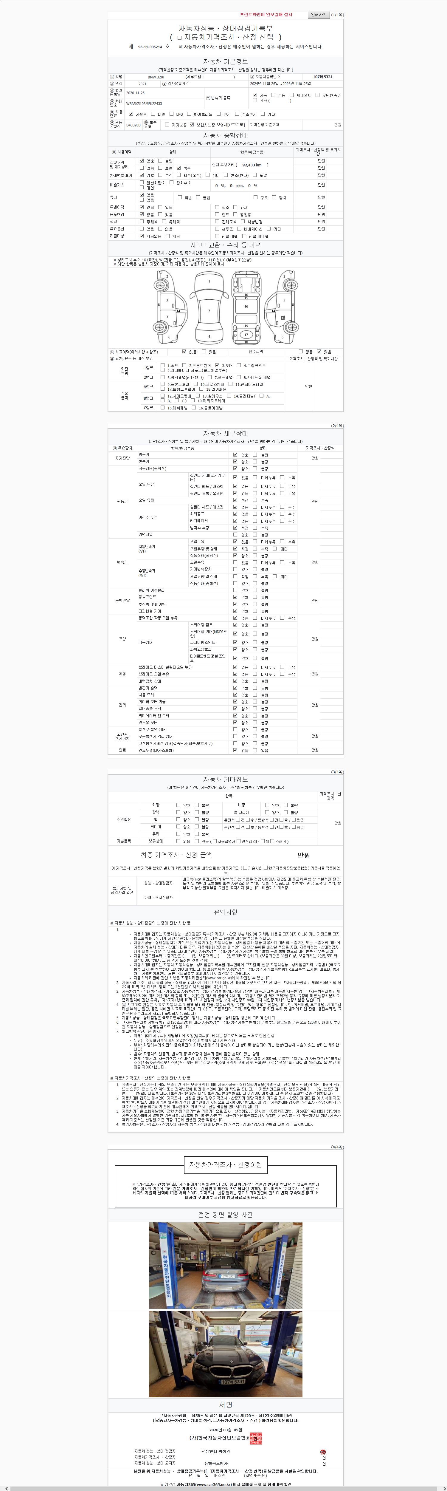 -중고자동차 매매업자를 통해 차량을 구입하실 경우 반드시 "중고자동차 성능, 상태점검 기록부"를 교뷰 받으셔야 하며, 매매업자는 반드시 의무 교부 하여야 압니다.