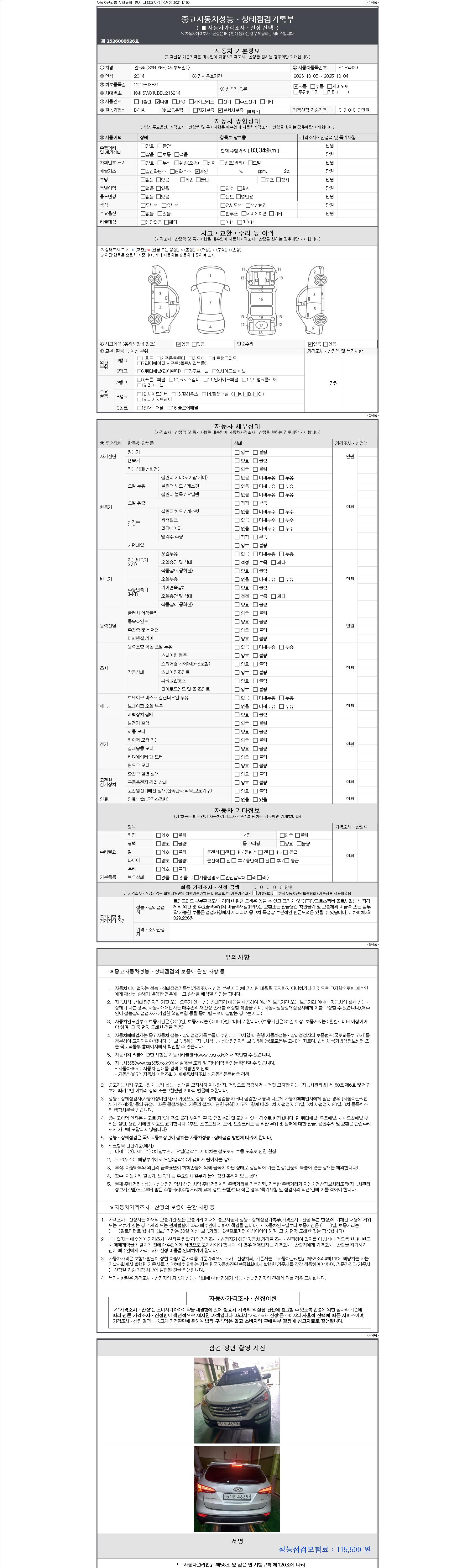 -중고자동차 매매업자를 통해 차량을 구입하실 경우 반드시 "중고자동차 성능, 상태점검 기록부"를 교뷰 받으셔야 하며, 매매업자는 반드시 의무 교부 하여야 압니다.