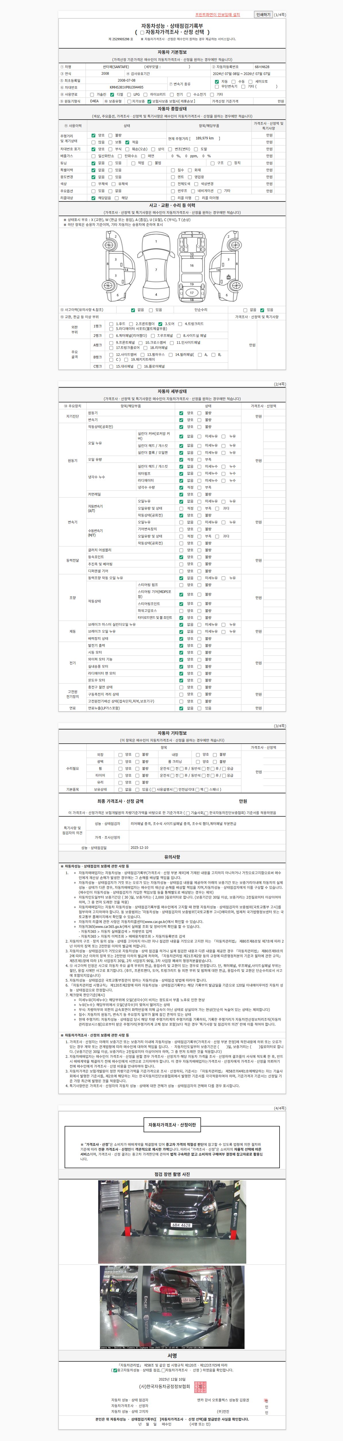 2. 차량 등록증이나 성능점검지 등을 상담자에게 요청및 확인하시고 사전에 미리 점검 하시기를 권유드립니다.