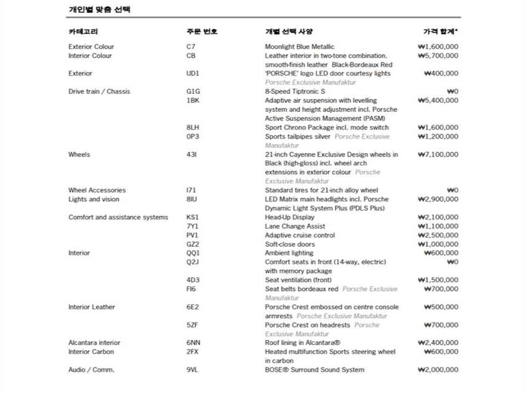 포르쉐 카이엔 카이엔(PO536) (19년~) 3.0 |