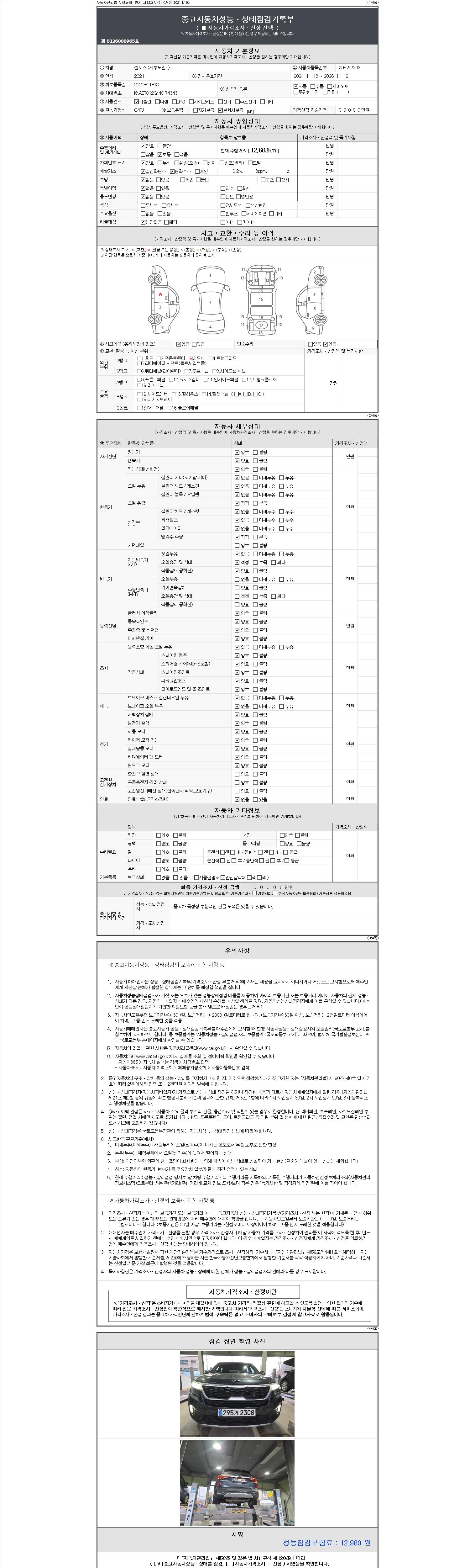 | 주행거리 | 12,603 km | 차량번호 | 295거2308 |