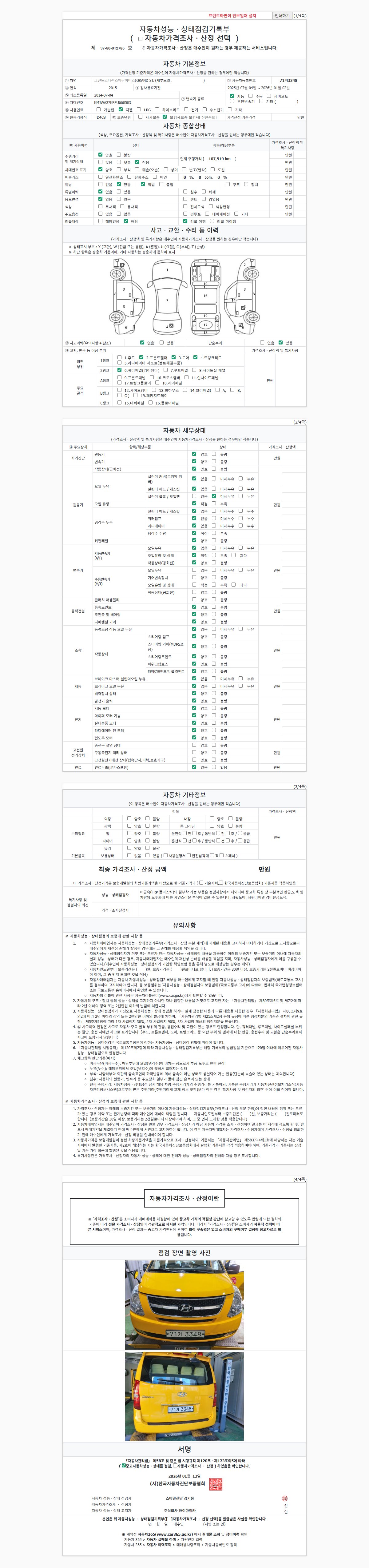 2. 차량 등록증이나 성능점검지 등을 상담자에게 요청및 확인하시고 사전에 미리 점검 하시기를 권유드립니다.