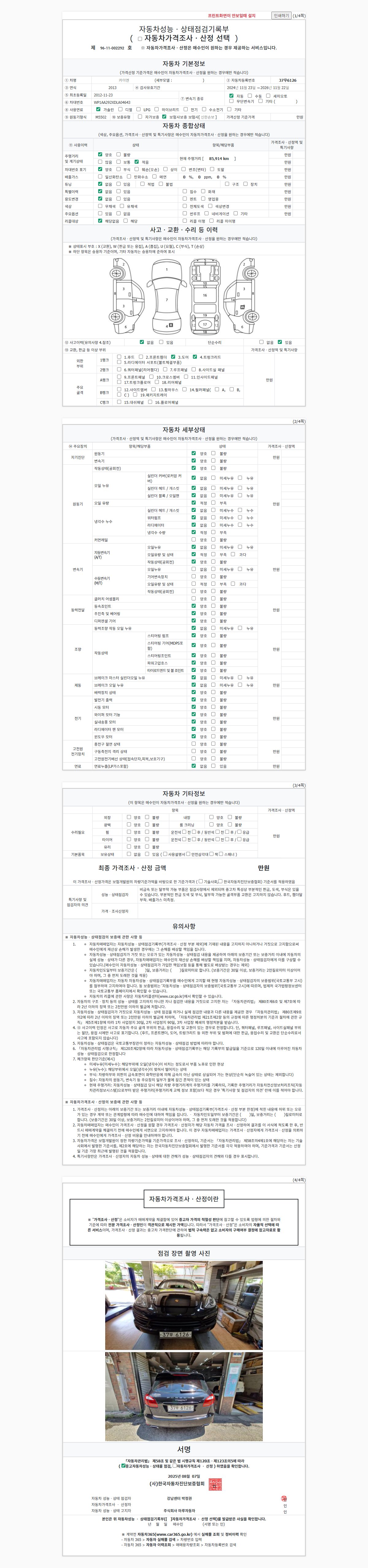 2. 차량 등록증이나 성능점검지 등을 상담자에게 요청및 확인하시고 사전에 미리 점검 하시기를 권유드립니다.