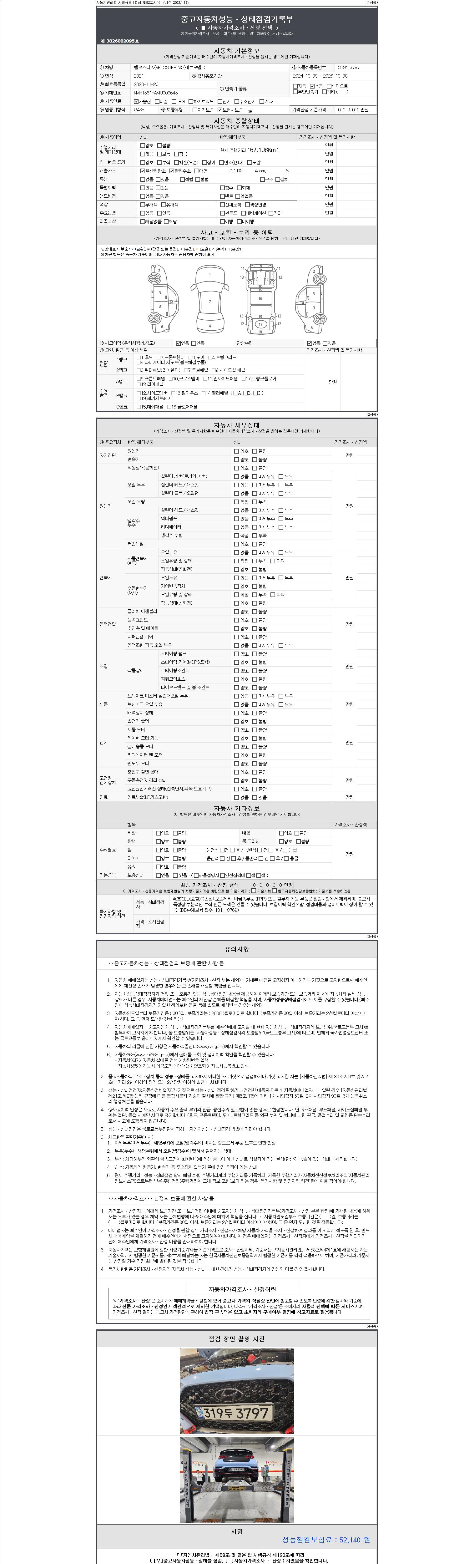 | 주행거리 | 67,108 km | 차량번호 | 319두3797 | 사고유무 | 성능기록부 참조 | 제시번호 | 제 2147483647 호 |