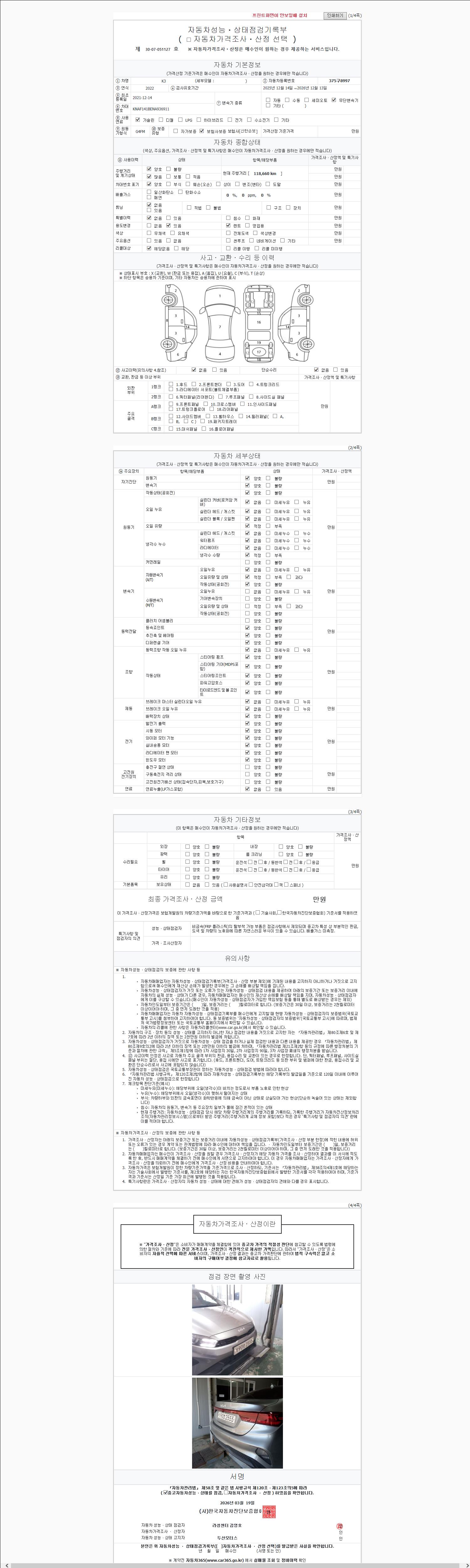 - 2. 차량 등록증이나 성능점검지 등을 상담자에게 요청및 확인하시고 사전에 미리 점검 하시기를 권유드립니다.