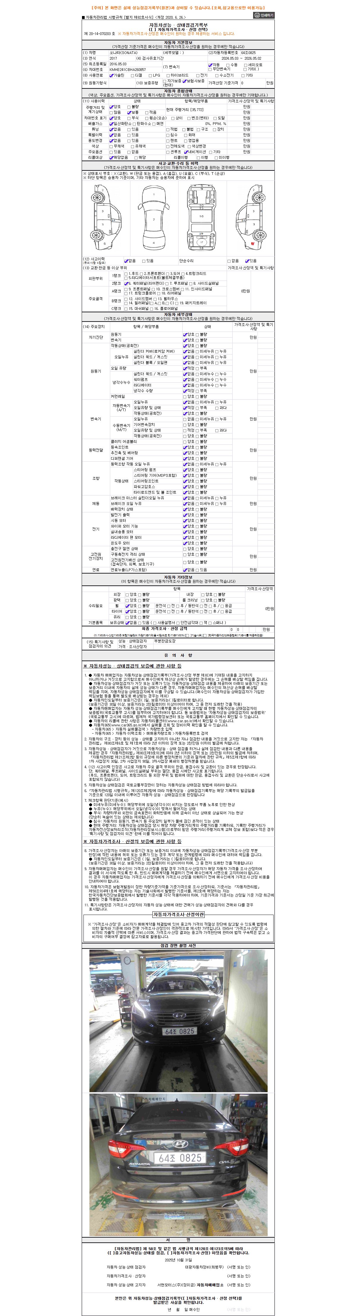 - 2. 차량 등록증이나 성능점검지 등을 상담자에게 요청및 확인하시고 사전에 미리 점검 하시기를 권유드립니다.