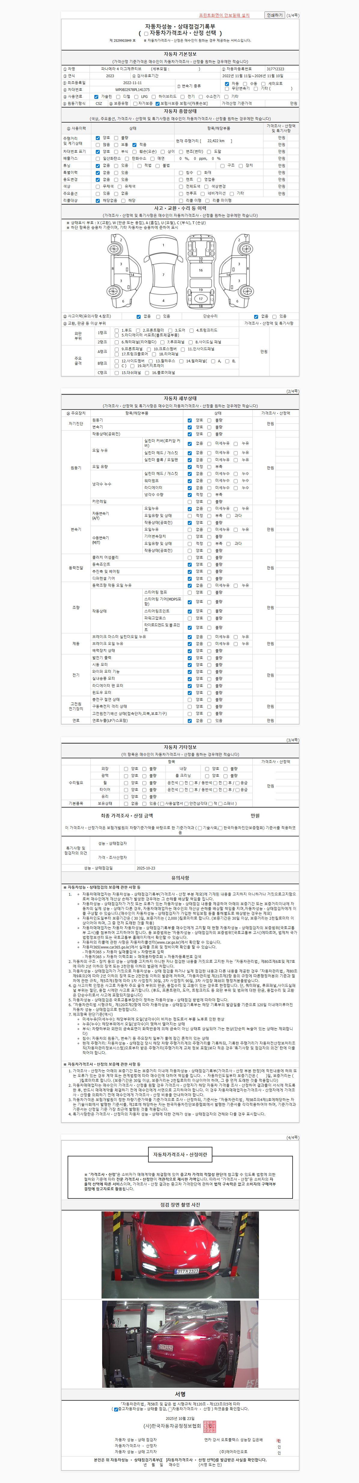 | 주행거리 | 22,422 km | 차량번호 | 317거2323 | 사고유무 | 성능기록부 참조 | 제시번호 | 제 2025143100 호 |