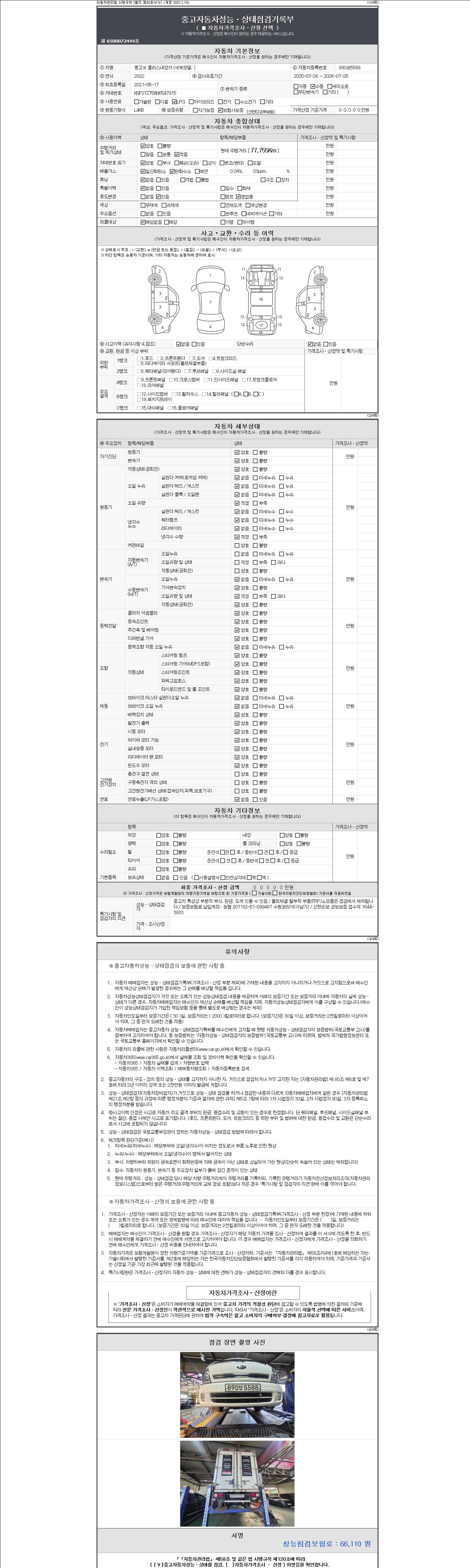 - 2. 차량 등록증이나 성능점검지 등을 상담자에게 요청및 확인하시고 사전에 미리 점검 하시기를 권유드립니다.