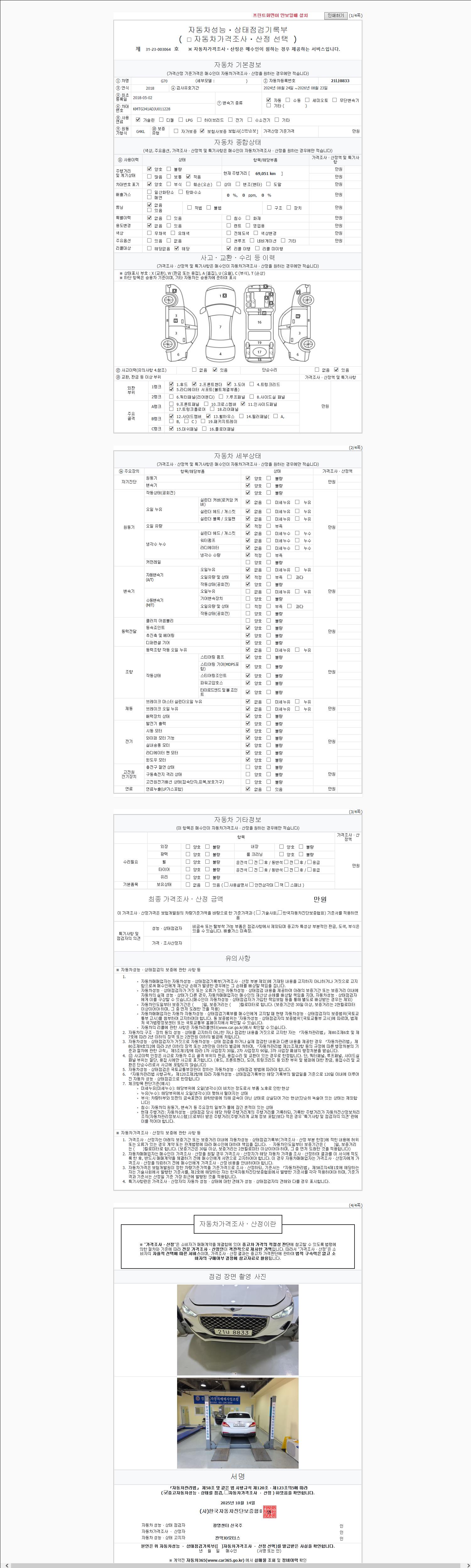 | 주행거리 | 69,041 km | 차량번호 | 21나8833 | 사고유무 | 성능기록부 참조 | 제시번호 | 제 2147483647 호 |