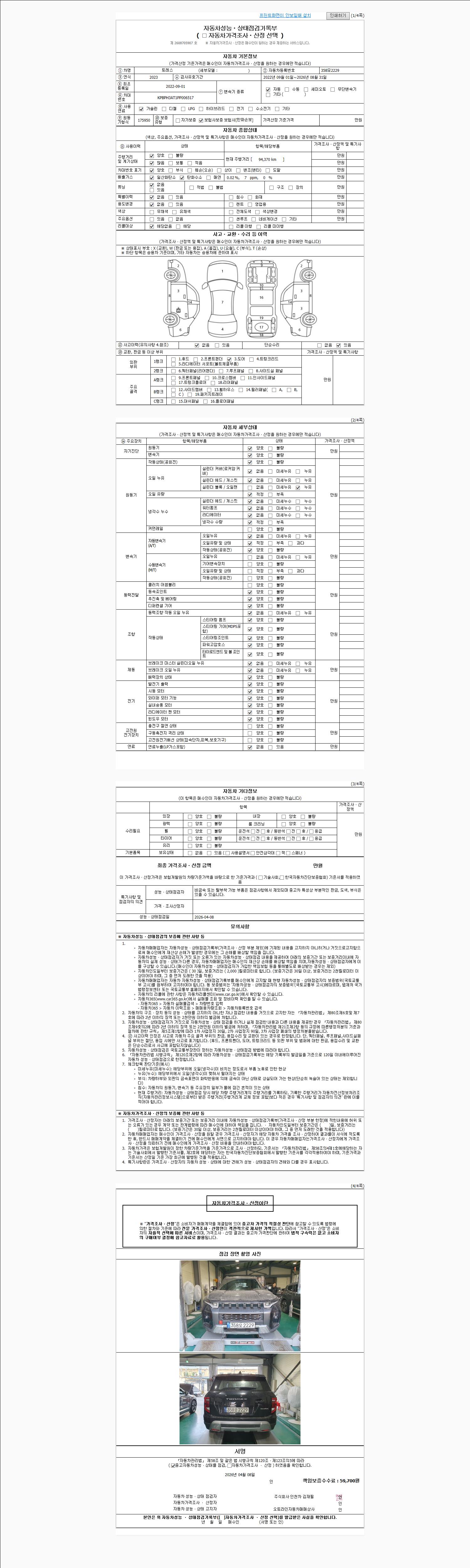 - 2. 차량 등록증이나 성능점검지 등을 상담자에게 요청및 확인하시고 사전에 미리 점검 하시기를 권유드립니다.