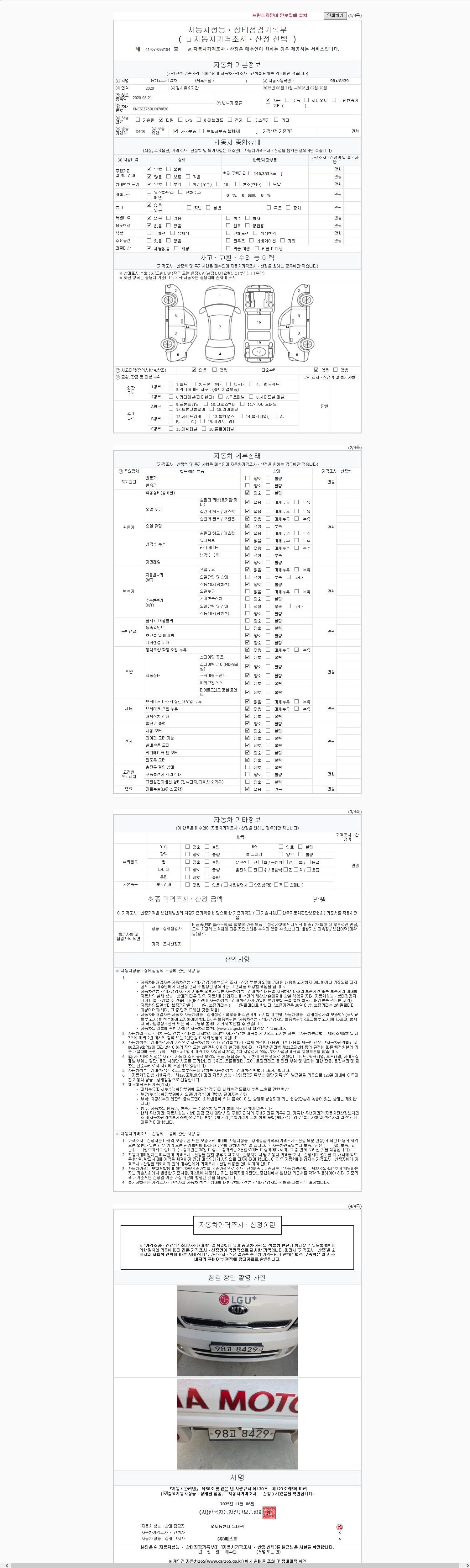 - 2. 차량 등록증이나 성능점검지 등을 상담자에게 요청및 확인하시고 사전에 미리 점검 하시기를 권유드립니다.