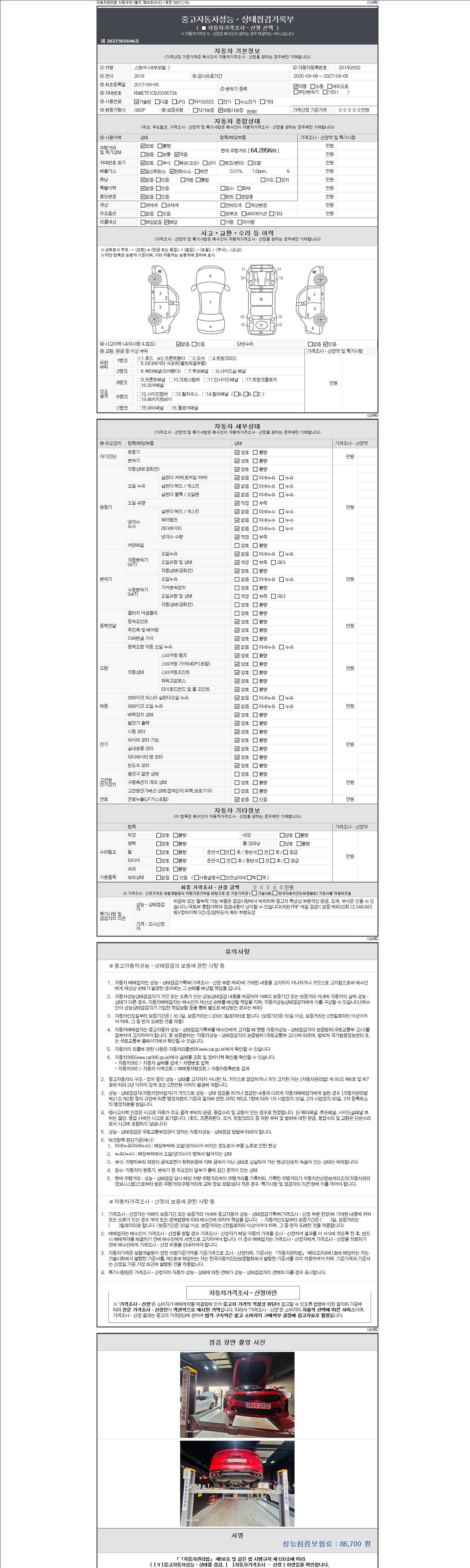 - 2. 차량 등록증이나 성능점검지 등을 상담자에게 요청및 확인하시고 사전에 미리 점검 하시기를 권유드립니다.