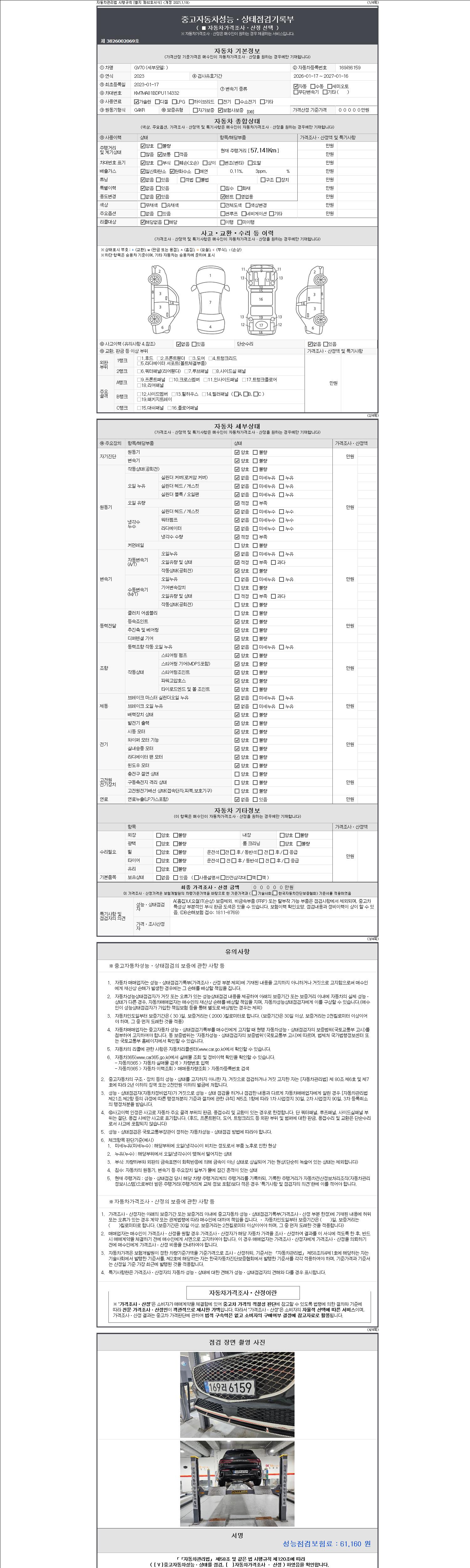 | 주행거리 | 57,141 km | 차량번호 | 169러6159 | 사고유무 | 성능기록부 참조 | 제시번호 | 제 2147483647 호 |