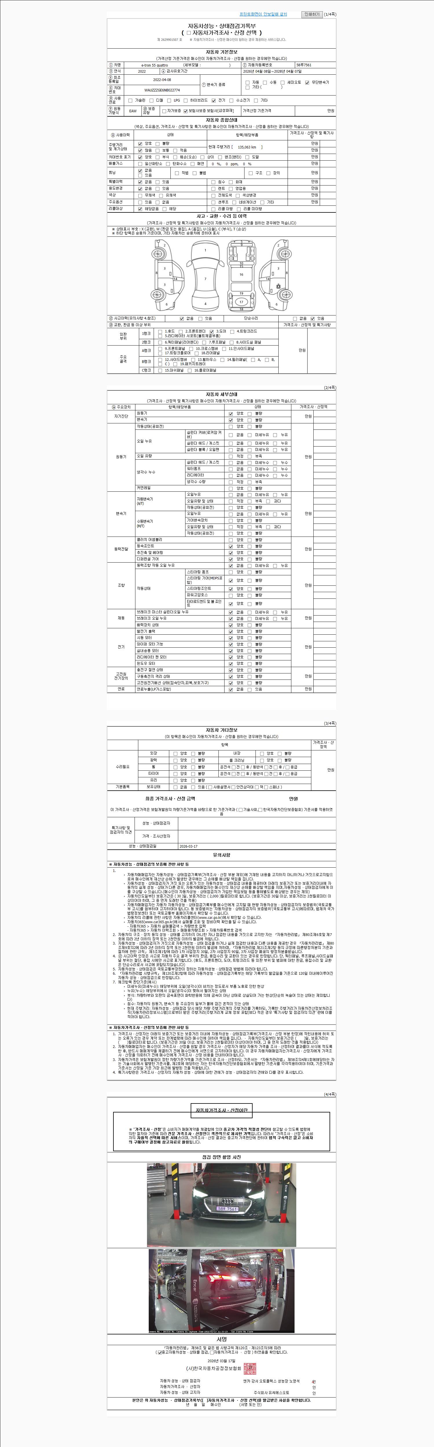 - 2. 차량 등록증이나 성능점검지 등을 상담자에게 요청및 확인하시고 사전에 미리 점검 하시기를 권유드립니다.
