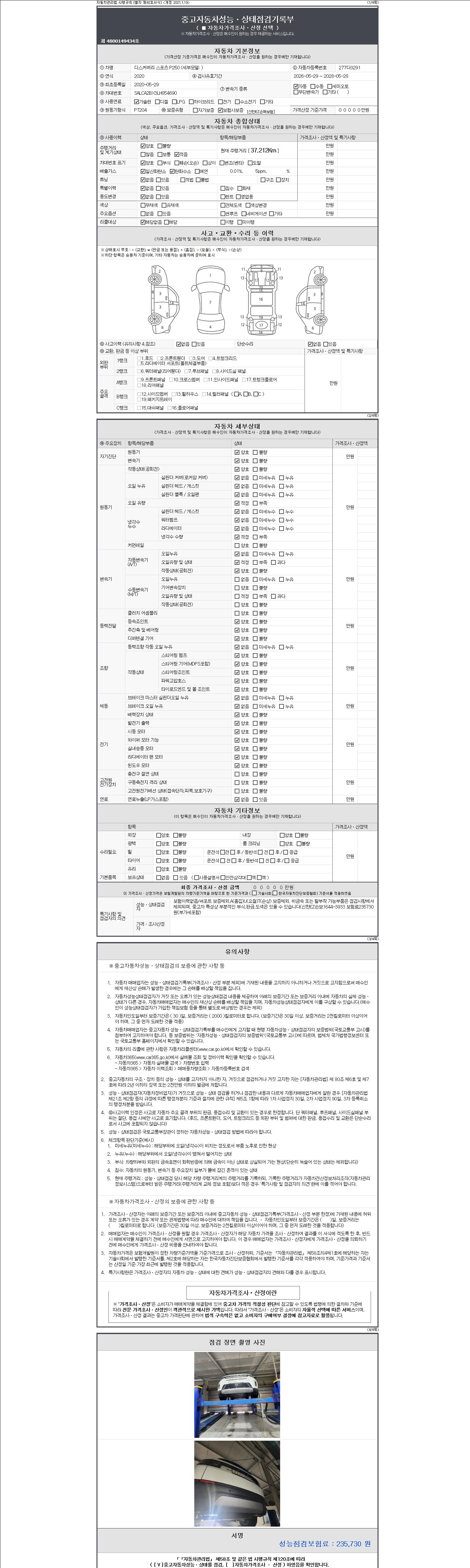 - 사고유무 : 성능기록부 참조